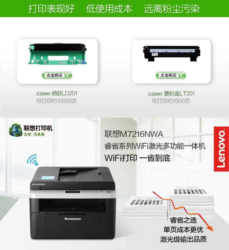 • 產(chǎn)品品牌:聯(lián)想(Lenovo)M7216 A4黑白激光多功能一體機