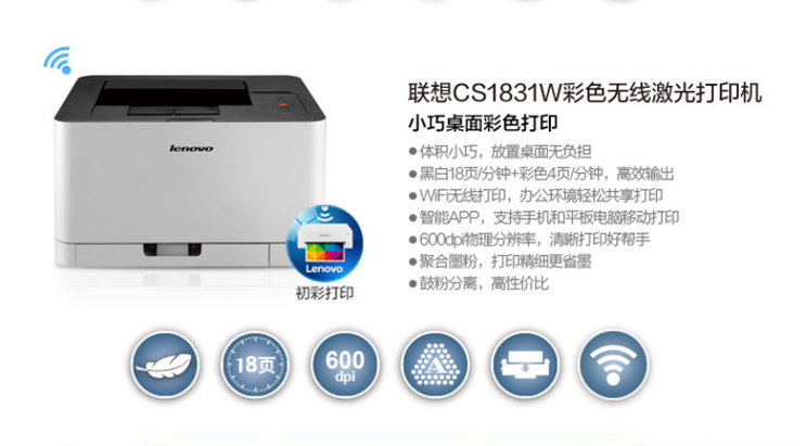 • 產(chǎn)品名稱:聯(lián)想(Lenovo)CS1831W彩色激光打印機
