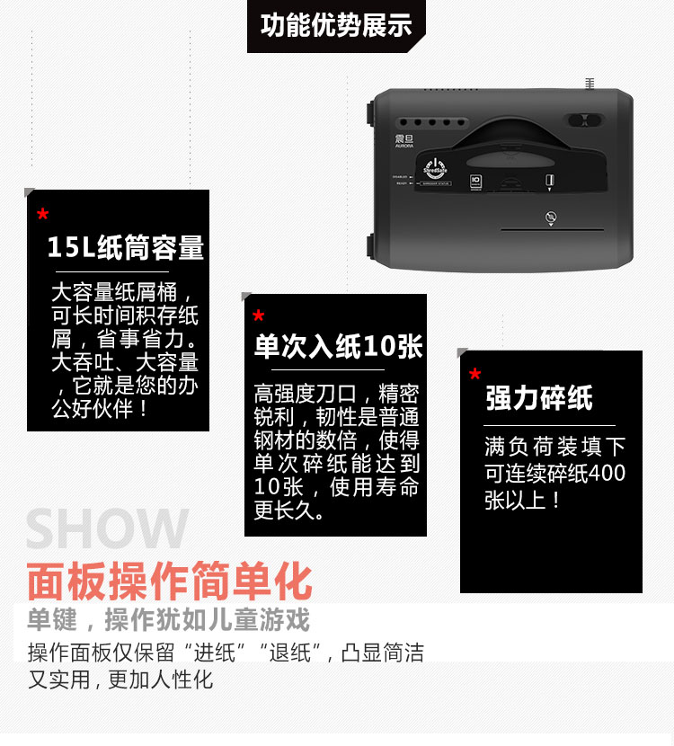 • 產(chǎn)品名稱:震旦AS1019CD 專業(yè)辦公家用碎紙機(jī)(單次碎紙10張碎CD碎卡蓋板靜音大型