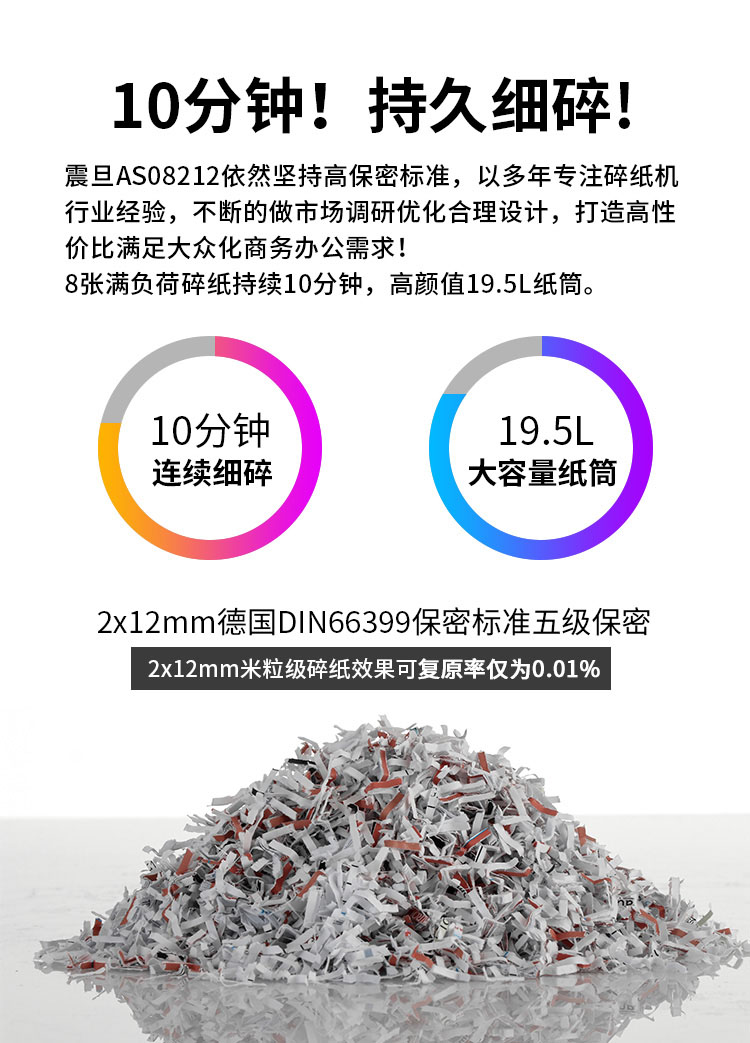 • 產(chǎn)品品牌:震旦AURORA AS08212CD 碎紙機(jī)辦公大功率商用粉碎機(jī)紙自動(dòng)電動(dòng)辦公室文件碎紙高保密粒裝