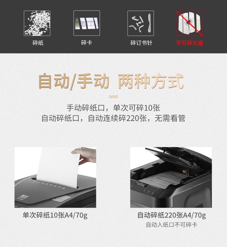 • 產(chǎn)品品牌:震旦 AS220MQ 多功能碎紙機辦公電動單次碎卡5級保密低噪