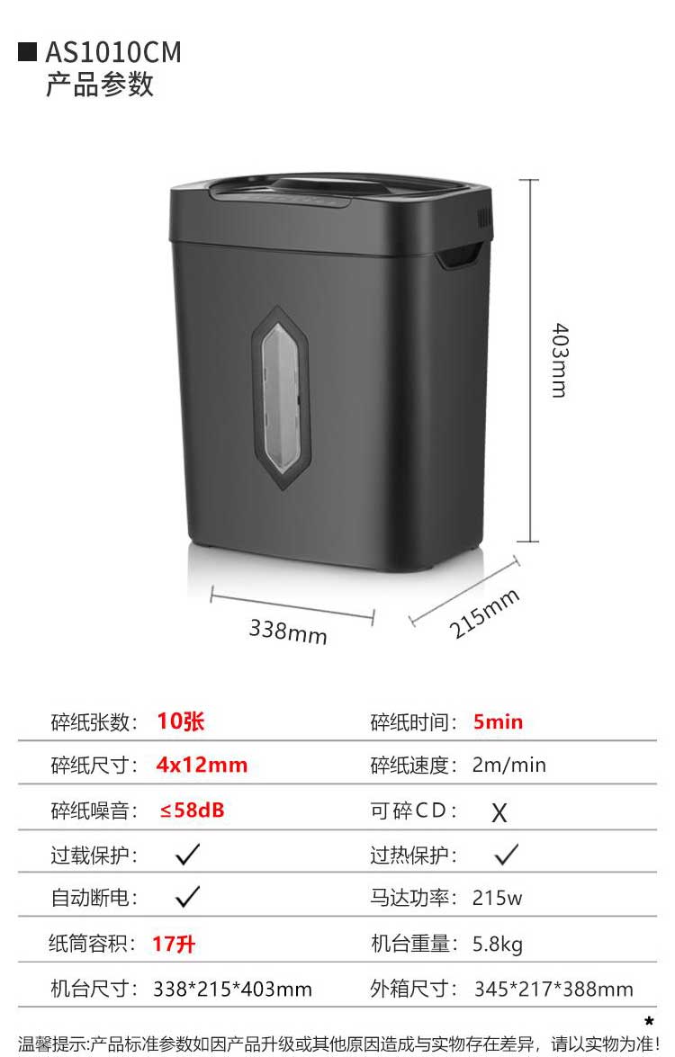 震旦碎紙機(jī) AS1010CM 高保密4級(jí)單次10張低音辦公碎紙機(jī)