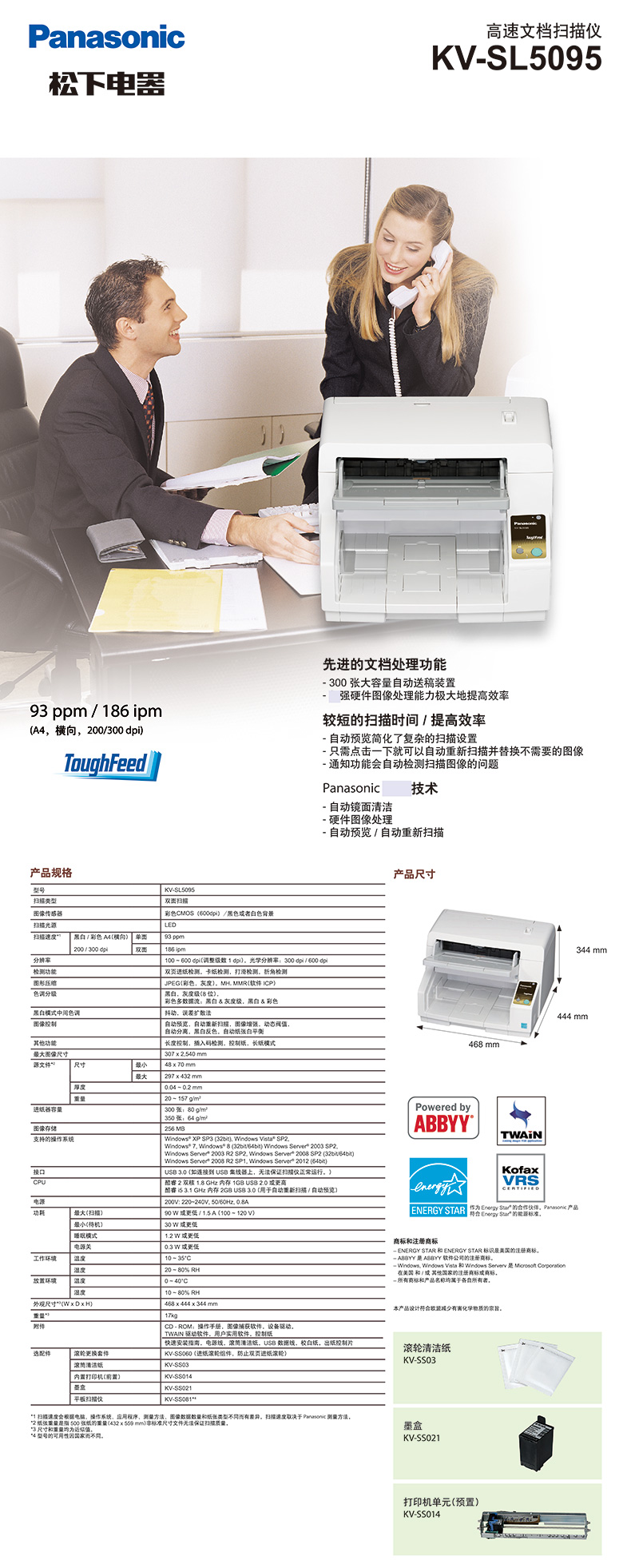 • 產(chǎn)品名稱:松下 KV-SL5095 A3彩色高速文檔掃描儀