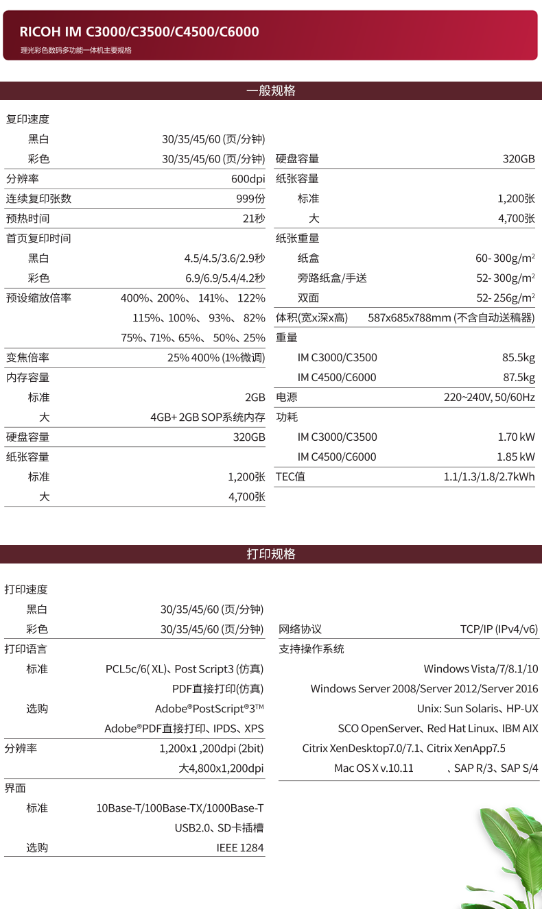 • 產(chǎn)品品牌:理光(Ricoh)IMC3000/3500/4500/6000 A3彩色激光數(shù)碼復(fù)合機(jī)