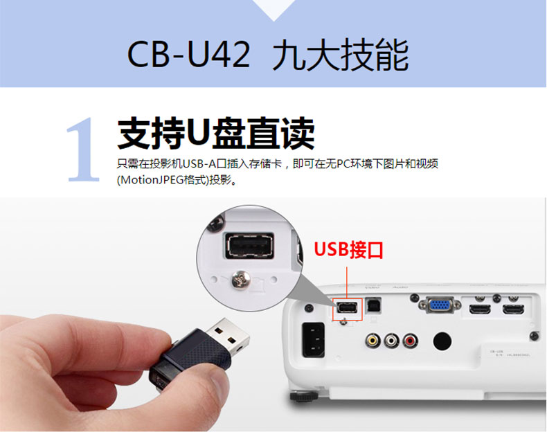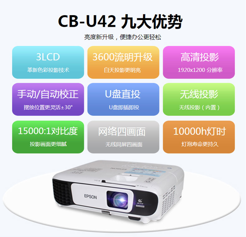 愛(ài)普生(EPSON)CB-U42投影儀 高清辦公商務(wù)投影機(jī) 官方標(biāo)配